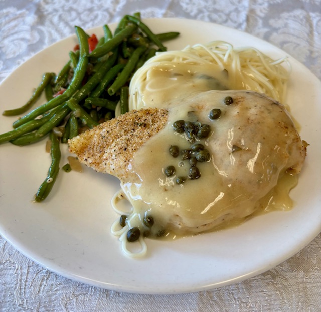 Classic - served with angel hair pasta and Italian green beans.