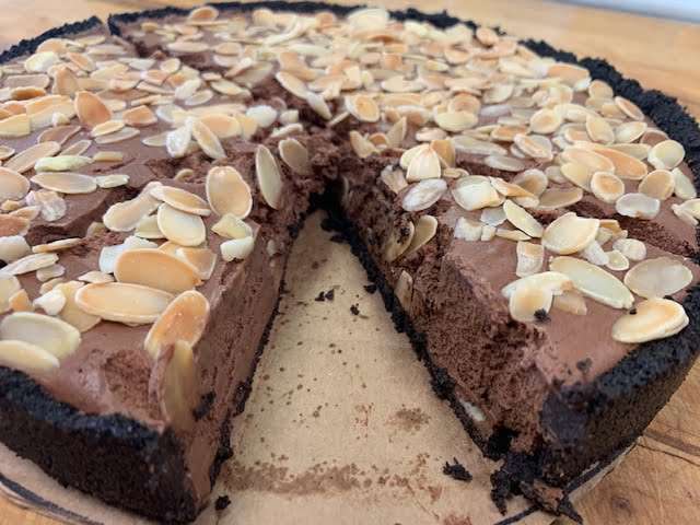 Amaretto & Almond Chocolate Mousse Cake — Dark, rich, and decadent. Belgian chocolate mousse in an Oreo cookie crust. Forever copied but never duplicated ;)