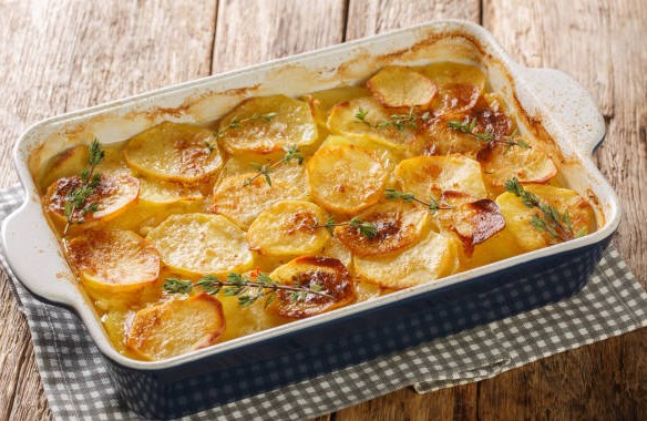 2 lbs – Rich and Creamy! Thinly sliced russet potatoes and Spanish onion baked in a creamy cheese sauce.
