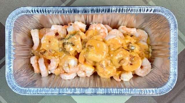 Shrimp ala Vodka (FD) – large shrimp topped with a vodka spiked plum tomato cream sauce with fresh basil, prosciutto, onion, and a pinch of crushed red pepper.
