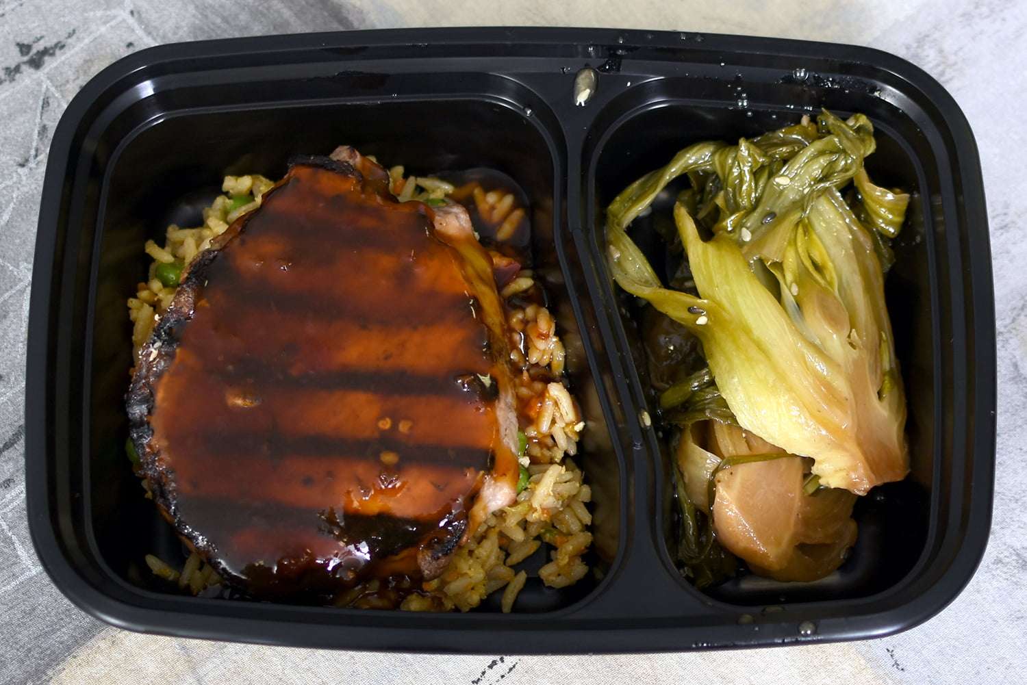 Flex – Served with Asian braised cabbage and vegetable fried rice.