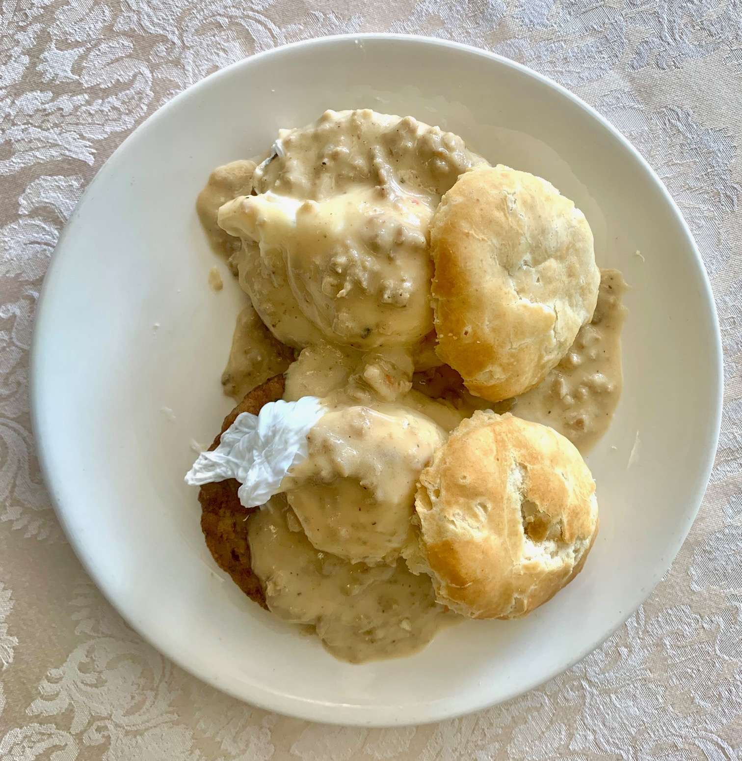 2 fluffy buttermilk biscuits topped with sausage patties, poached eggs and Chef Felix’s sausage gravy. Choice of entree only, with TFC’s cauliflower home fries or potato home fries.